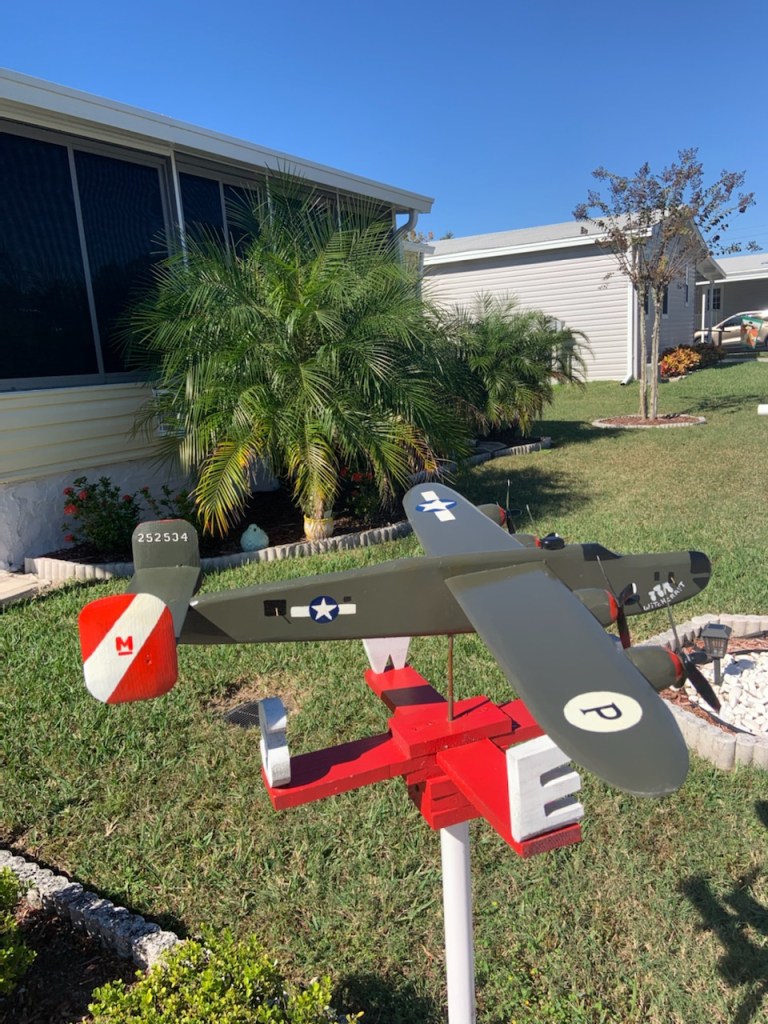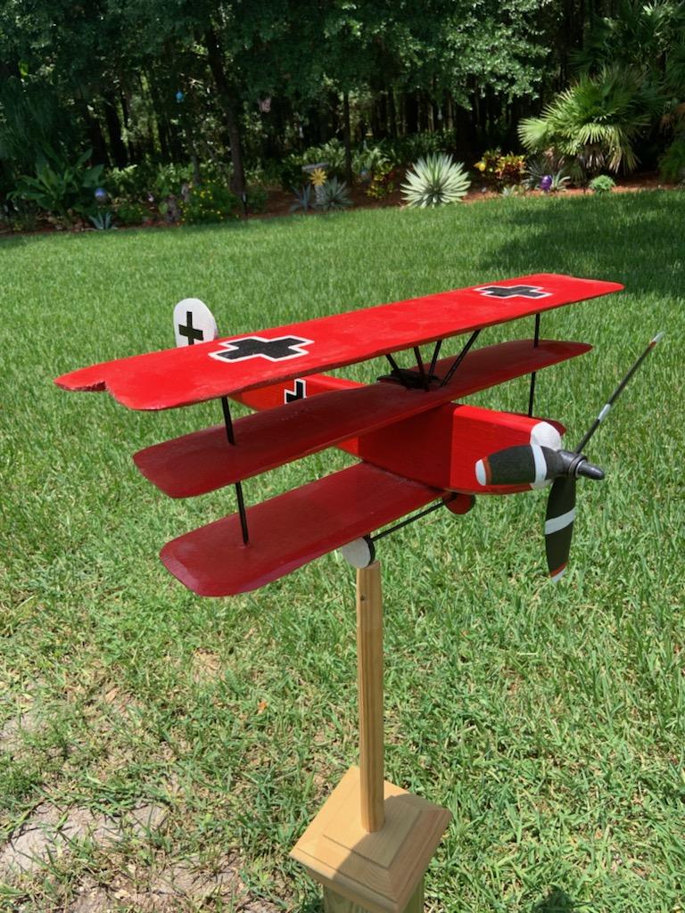 We offer hand made and hand painted outdoor wooden “Whirligigs”. Perfect for lawn or garden. We offer a full line of aircraft, military and non military from WWI Biplanes to modern day aircraft. Also, we offer some non aircraft items such as Tanks, Ships and Submarines.